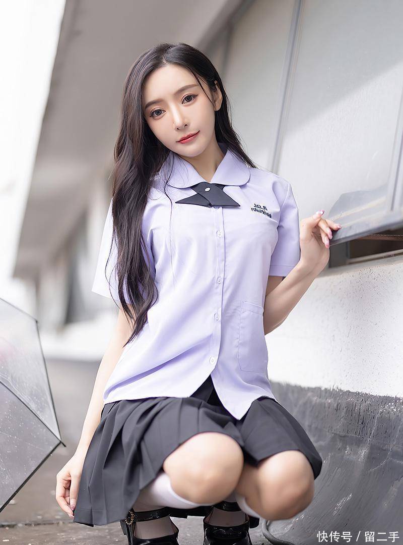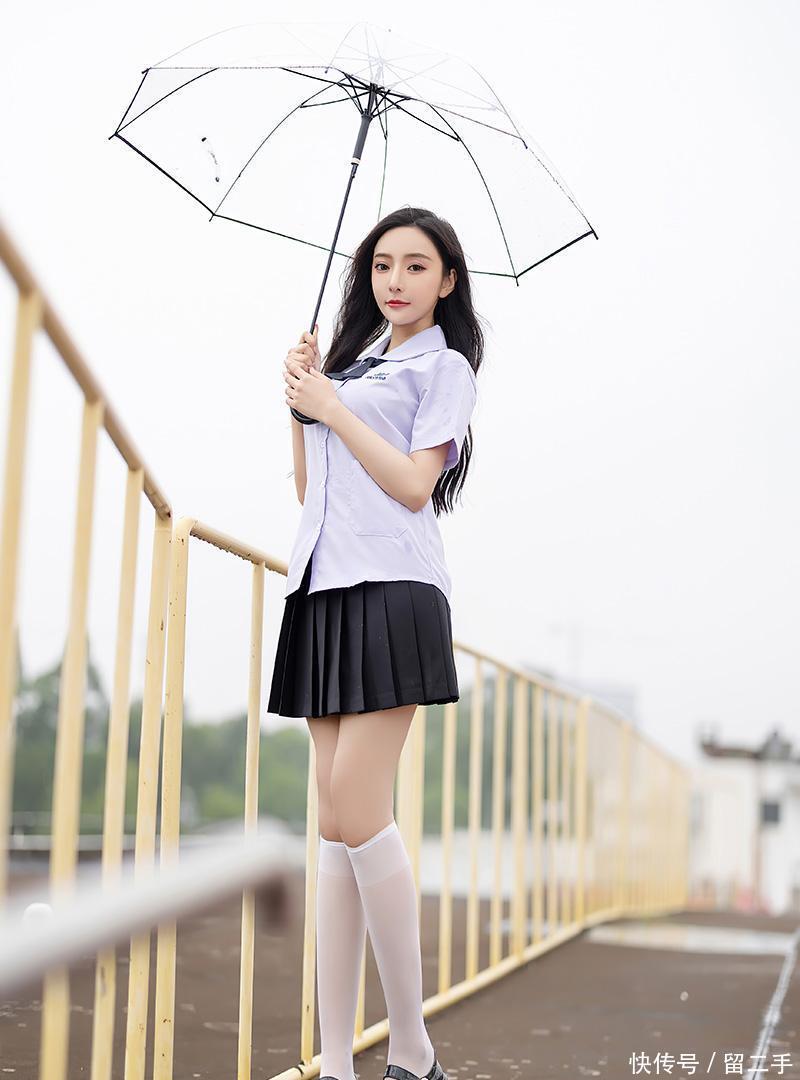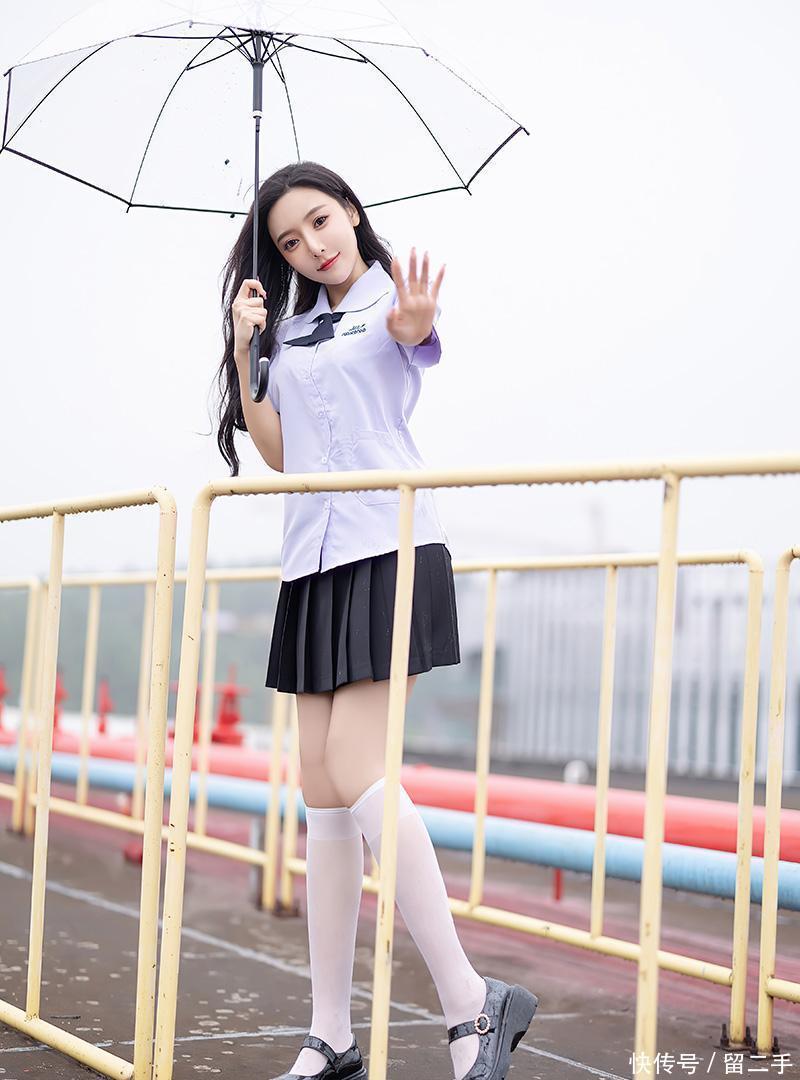 你看她这一身,浅紫衬衫、黑百褶裙,还有那白色长筒袜,这不就是校园剧里的初恋脸女主穿搭吗?关键她 33 岁了,穿这身一点不突兀,反而把清纯和小性感融合得刚刚好。那透明伞一撑,在天台上摆各种 pose,纯欲感直接拉满,这风格转变也太成功了。再看细节,她的发型是自然的黑长直,妆容清透,就靠红唇提气色,这种 “轻妆感” 特别加分。穿搭上,校服本身是清纯的,但厚底小皮鞋又带点小个性,这种混搭让清纯不是傻白甜,而是带点撩人的纯欲。兄弟们,这就是穿搭的小心机啊,用基础款玩出层次感。所以说,王馨瑶这波风格切换真的绝,33 岁把清纯风穿得这么有味道,不是装嫩是真会穿。兄弟们以后要是想尝试风格转变,也可以学学这种 “反差感” 穿搭,用不同风格的元素混搭,效果绝对 yyds!